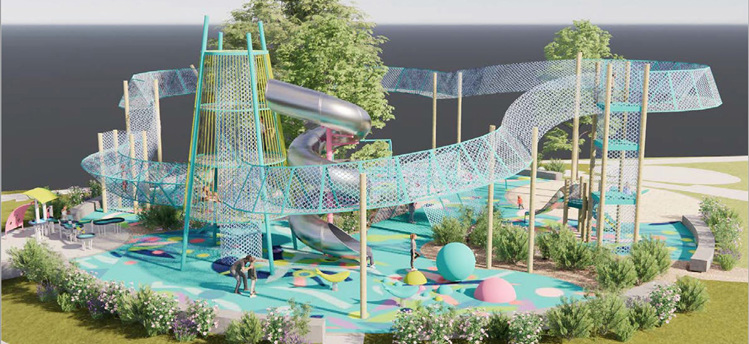 Nu finns det ett förslag på en helt ny lekplats i parken på nya Slussholmen. Lekplatsen har utvecklats tillsammans med idéer från Södertäljes barn och unga.