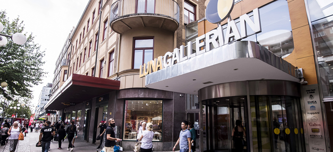 Fastigheten Luna 8, som består av Lunagallerian med parkeringshus på Storgatan.