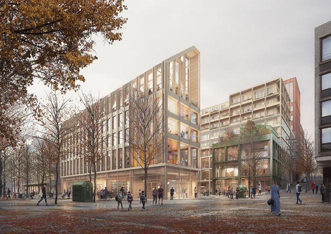 I förslaget förordar man fyra stadskvarter, med varierande hushöjder mellan fyra och nio våningar och en blandning av bostäder, kontor, handel, service och kultur.