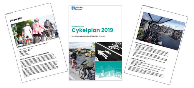 I Södertälje finns det stor potential att öka cyklingen. För att möta upp de behov som finns, och för att ytterligare förbättra möjligheterna att cykla, har Södertälje kommun tagit fram Cykelplan 2019. Den antogs i tekniska nämnden december 2019.