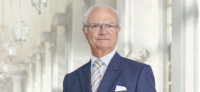 Kungen anländer till Södertälje Science Park och välkomnas av