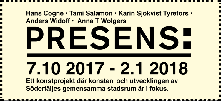 Välkomna till pressvisning av konstprojektet Presens, där utvecklingen av Södertälje och det gemensamma stadsrummet är i fokus. Fem konstnärer presenterar gestaltningar utifrån temat mänskliga rättigheter och allas rätt till ett levande stadsrum. Tid: torsdag 5 oktober kl. 11.00 Plats: Marenplan