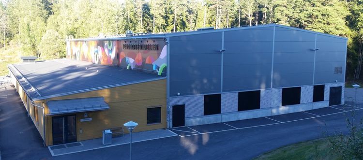 En nybyggd fullstor sporthall belägen i området Pershagen
