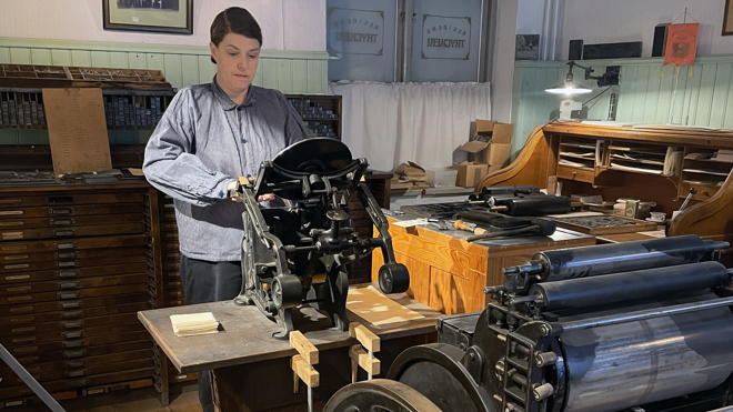 Kom in och se hur man tryckte kort, tidningar och affischer innan datorns tid. Prova på att trycka själv.