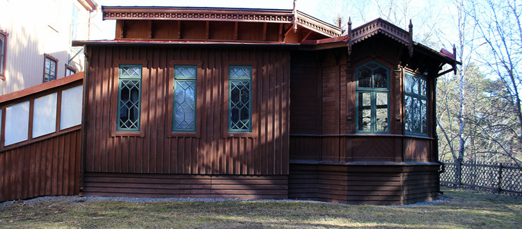 Holmbergska sommarvillan låg tidigare på Värdsholmen i Södertälje. Byggmästare Jöns Peter Holmberg lät uppföra huset som sommarbostad för sig och sin familj år 1885. Den största delen av sommarvillan revs senare, men matsalen och verandan bevarades och flyttades till Torekällberget 1966.