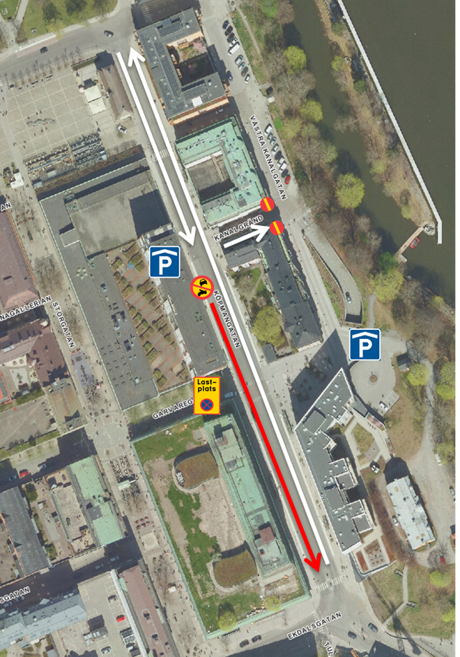Möjligheten att köra i motsatt riktning, från Västra Kanalgatan till Köpmangatan, upphör alltså.