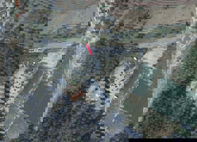 Bildtext: Gång- och cykelbron på Gärtunavägen är markerad i rött på bilden.
