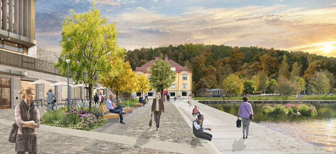 För många Södertäljebor är den här platsen hjärtat i staden och Marens vatten en otroligt värdefull tillgång. Ambitionen med det här förslaget är att lyfta fram och låta medborgare och besökare njuta av den här platsen ännu mer. Vi tar bort asfalt och garageinfarten och skapar fin stenläggning, sittplatser, grönska och gångstråk. I förslaget kommer man närmare vattnet och det ges större möjligheter att vistas vid vattnet i en trivsam miljö. Dessutom planeras det för ny kajpromenad, ny belysning och uteserveringar vid restaurangerna. Det ska vara en attraktiv plats för såväl Södertäljebor som för besökare.