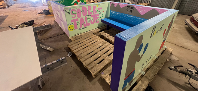 Klara har givetvis sett den färgglada bänken och är nu nyfiken och spänd på utfallet. Hur kommer platsen användas? Utöver det lyfter hon själva processen, som föregår utställandet av möbeln.