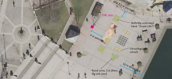 Konceptet sommarplatser handlar om att prova nytt. Här på Marenplan handlar det om att testa nya sätt att möblera kajer och gångstråk, om det berättar Klara Henning som är en av projektledarna på kommunens samhällsbyggnadskontor.