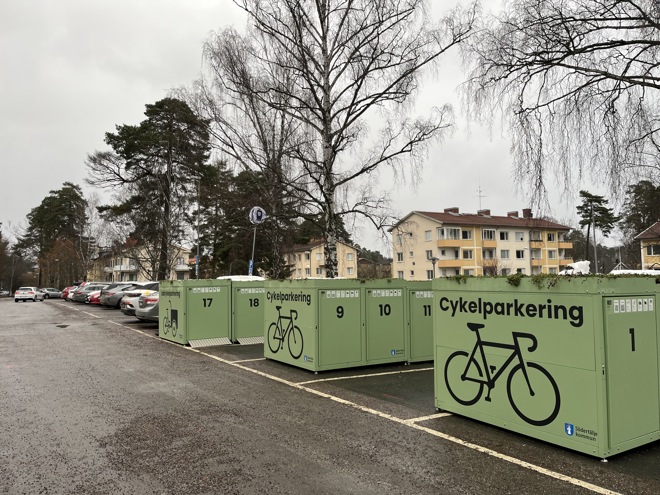 Vid pendeltågstationen i Södertälje hamn finns det nu möjlighet att tryggt och säkert låsa in din cykel i en cykelbox. Samtidigt som du får en säker och trygg cykelparkering är boxarna ett skydd mot väder och vind.